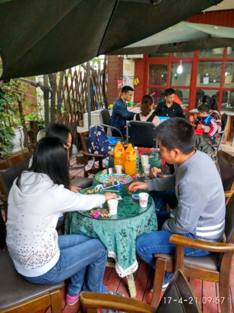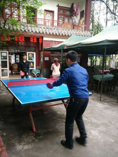 自由运动环节,各人都兴致勃勃,打乒乓球、羽毛球、玩棋牌、打桌球、唱卡拉OK……不亦乐乎,一时间欢声笑语,好不热闹。